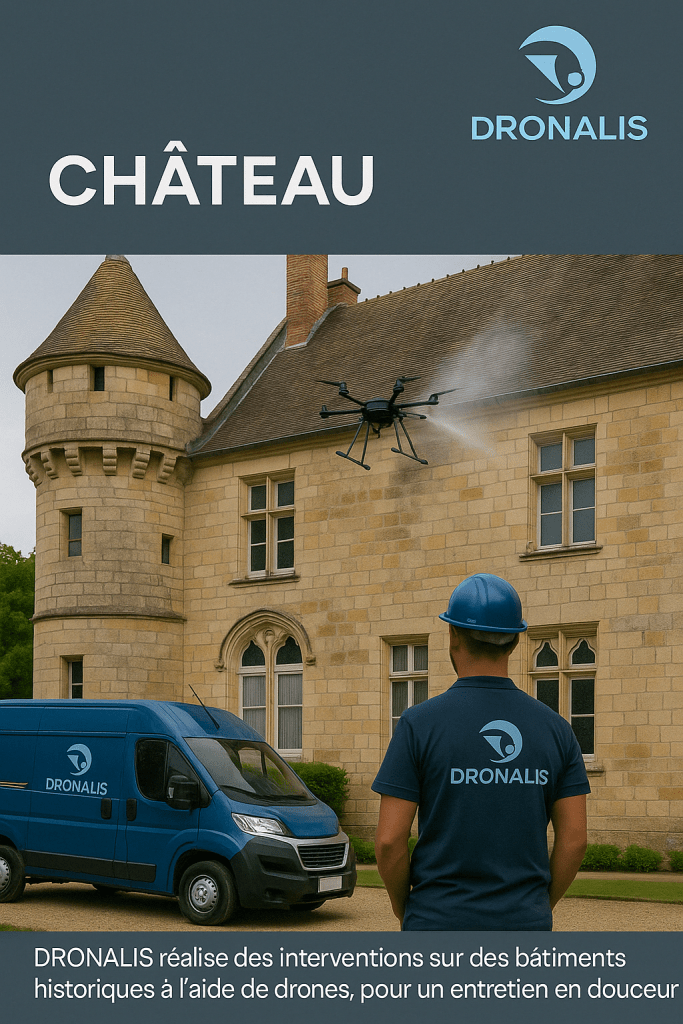 Nettoyage, inspéction, valorisation par drone: sécurité, rapidité et respect de votre patrimoine.